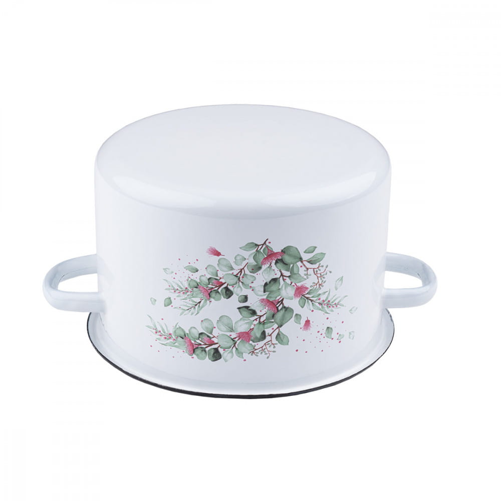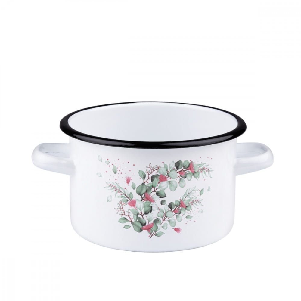 Garnek Emaliowany Biały Emalia Rybnik Eukaliptus 16 Cm 2 L