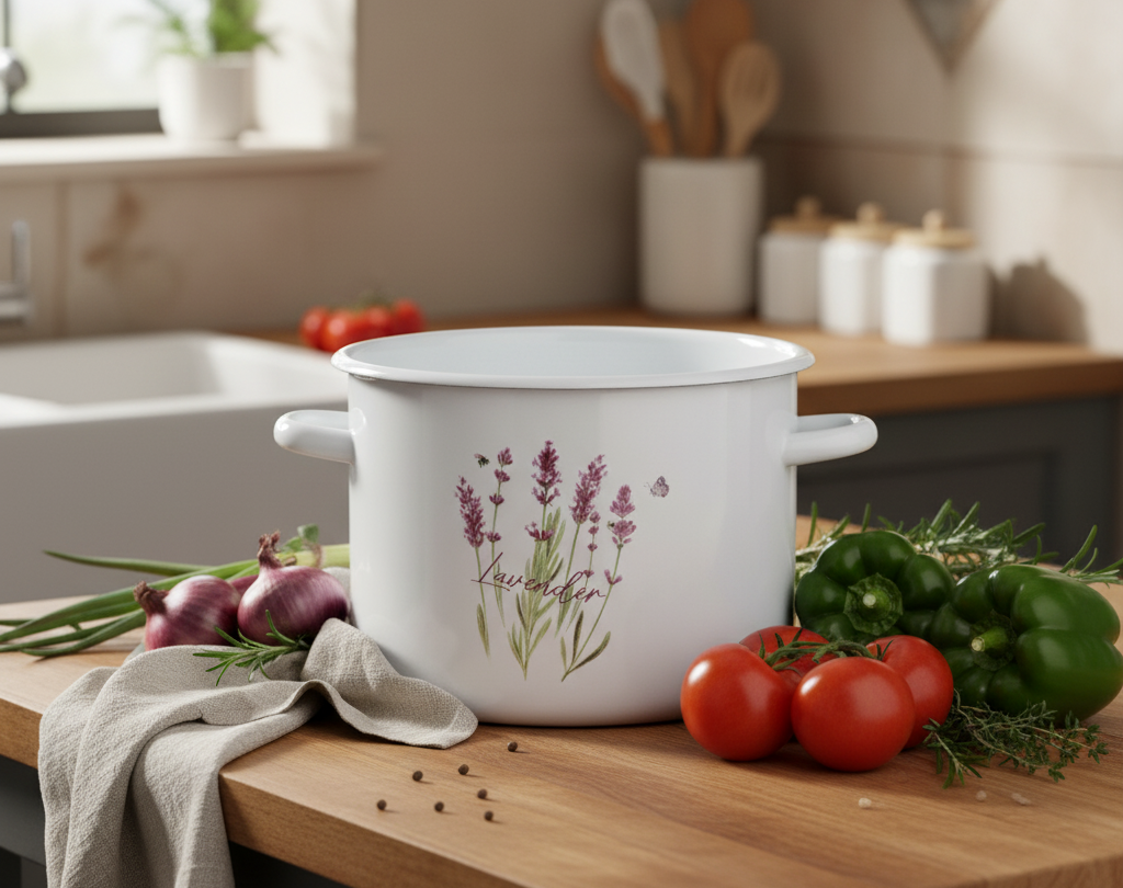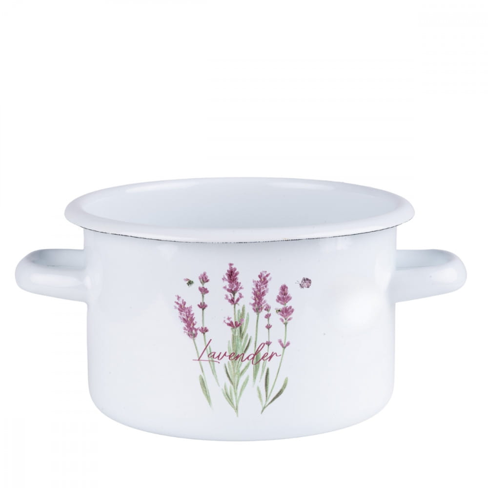 Garnek Emaliowany Biały Emalia Rybnik Lawenda 16 Cm 2 L