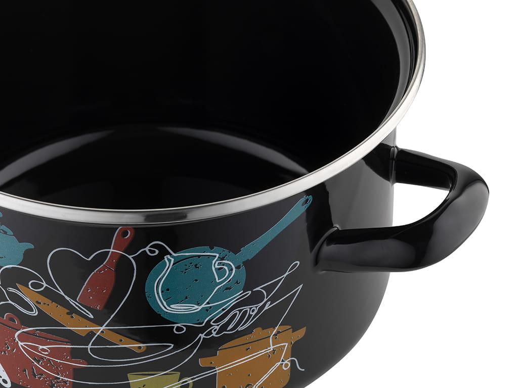 Garnek Emaliowany Czarny Z Pokrywką Srebrne Okucie Emalia Pleszew 22 Cm 4,7 L