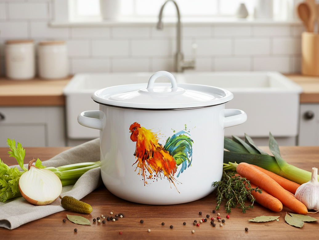 Garnek Emaliowany Z Pokrywką Net-Pol Biały Kogut 16 Cm 2 L