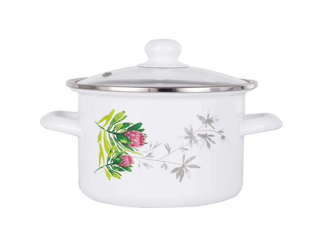 Garnek Emaliowany Z Szklaną Pokrywką Pleszew Protea 22 Cm 4,8 L