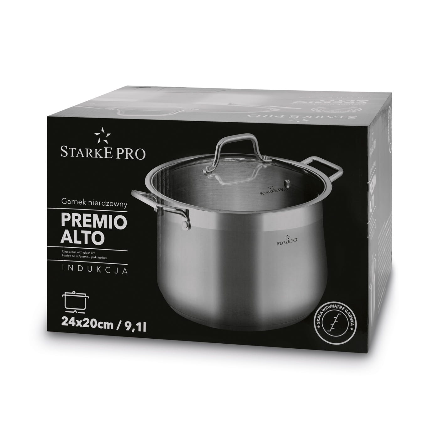 Garnek + Pokrywka Stal Nierdzewna Duży Starke Premio Alto 9,1 L 24 cm