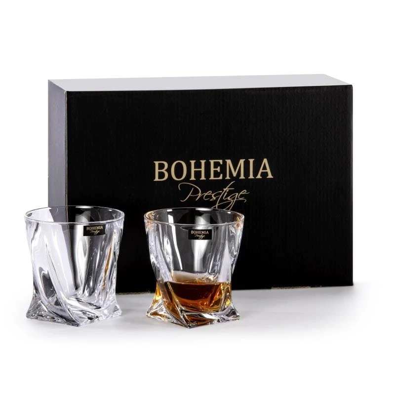 Szklanki do whisky dla entuzjastów tego trunku – idealnie nadaje się na prezent, ponieważ posiada eleganckie, bardzo ekskluzywne opakowanie w kolorze czarnym z sygnowanym złotym logo Bohemia Prestige.