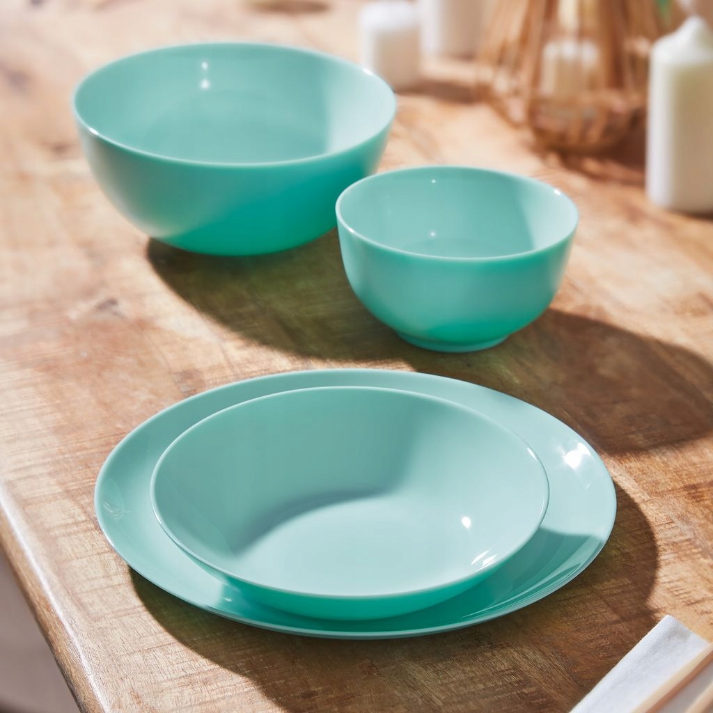 Talerz obiadowy z serii Diwali Turquoise to odmieniona wersja znanej i lubianej kolekcji naczyń ze szkła hartowanego. Jego nowa odsłona nie jest klasycznie biała, a modnie turkusowa. Poprzez specjalny proces hartowania, materiał ten zyskuje bardzo wysoką odporność na zadrapania i uderzenia. Gładka powierzchnia umożliwia proste i porządne czyszczenie, spełniając najwyższe normy higieniczne.