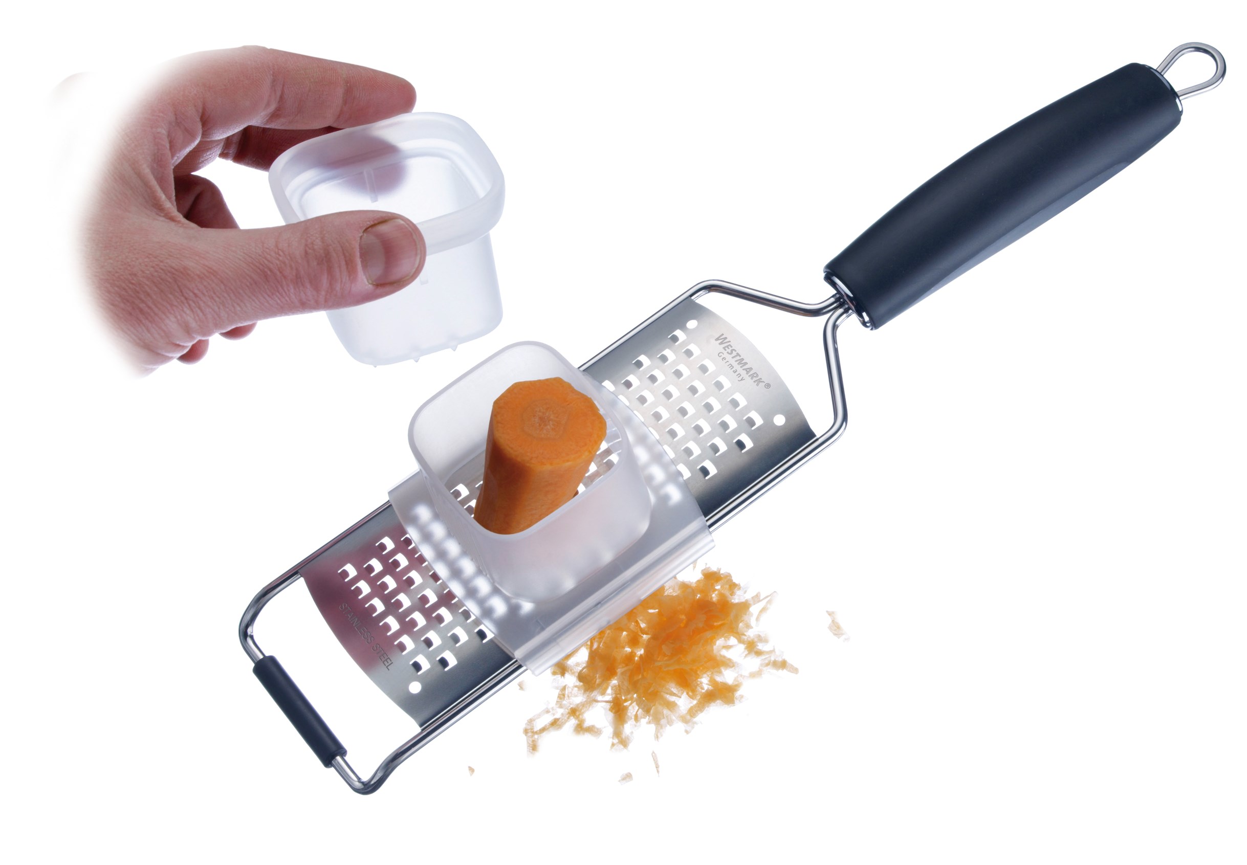 Wykonanie: nakładka: tworzywo sztuczne, tarka: stal nierdzewna, tworzywo sztuczne